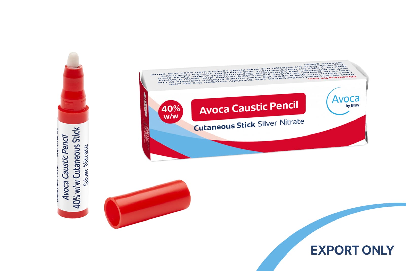 Silver nitrate has antimicrobial properties that can help prevent and treat infections in wounds. It works by releasing silver ions, which are toxic to bacteria and other microorganisms, thereby reducing the risk of infection and promoting wound healing. Silver nitrate works by chemically cauterising the skin to stop bleeding and destroys any unwanted tissue. Avoca by Bray silver nitrate pencils are available in 95% and 40% strengths. The silver nitrate is dispensed in a plastic case with a push on cap. All Avoca by Bray silver nitrate pencils are designed as single patient, multiple use treatments. The active substance is silver nitrate, and the product contains potassium nitrate.